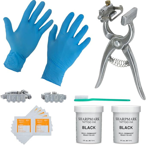 View full detailsBOCCS PRO Tattoo Kit with 198pcs Digits, Letters, Nitrile Gloves, Storage Case, Pliers, Ink and More. For Identification of Sheep, Pigs, Goats, Rab...